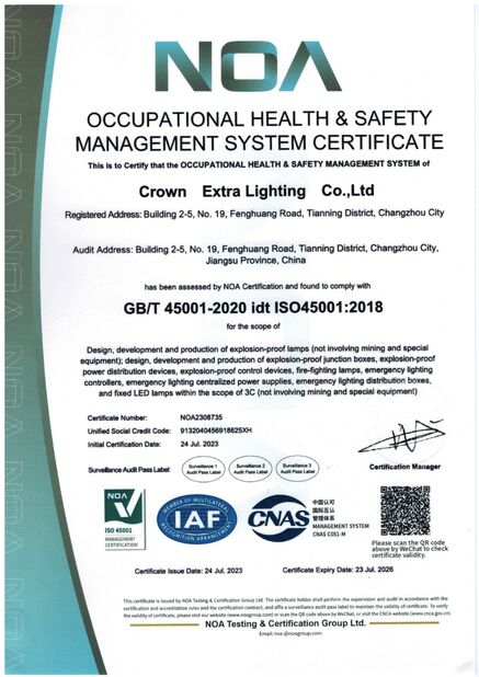 Согласно стандарту GB3836.1/GB3836.2-2010 национальному взрывозащищенному Китайской Республики, компания проходила проверку технических характеристик национального освещая качественного центра наблюдения и осмотра и получила взрывозащищенные сертификат и отчет по испытанию; затем, он получал аттестацию системы управления как аттестация ЕС ATEX, ISO9001: 2008, аттестация RoHS и лицензия продукции. Компания оборудована с предварительным технологическим оборудованием и оборудование для испытаний, имеет сильно квалифицированную и опытную команду и команду управления НИОКР техническую, в строгом соответствии с системой управления для администрации предприятия, оформления изделия, отростчатой проверки качества и обратной связи, эффективного для обеспечения качества взрывозащищенного освещения и обслуживаний СИД.