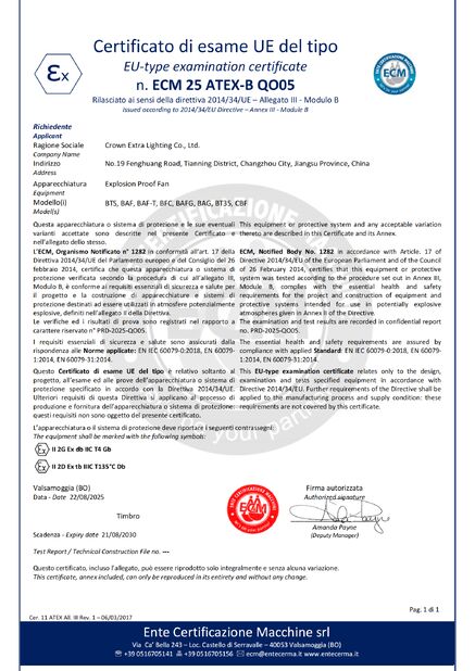 Стандарт:ATEX Номер:ECM 24 ATEX-D QS01 Дата выдачи:2024-08-06 Дата истечения срока действия:2027-08-05 |